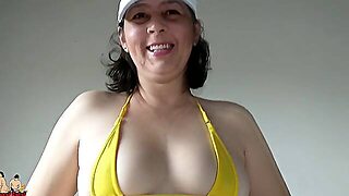 Naughty Japanese MILF Tomoe Nakamura gets pleasured in her see-through swimsuit