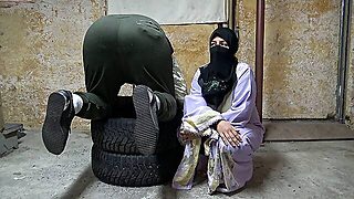 Muslim Wife Fucks American Soldier in His Asshole
