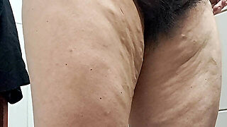 Sexy mummy tries on panties. eyeing a hairy mom, hairy cooter, big tits, big ass.