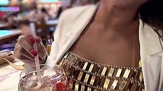 After the bar, the debauchery ran wild with the cuckold sucking and the slut getting a load in her butt.